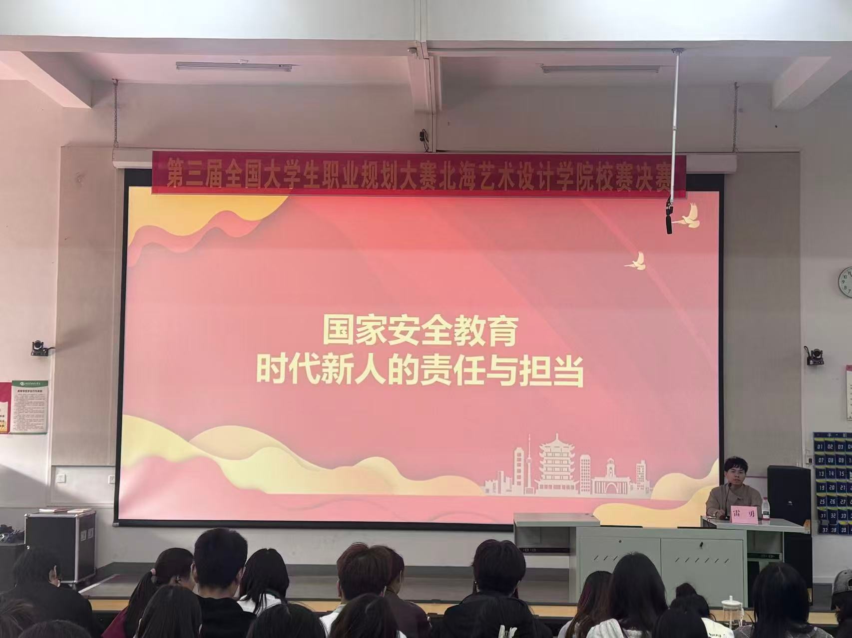 团委办公室主任雷勇开展国家安全教育专题讲课,通过多领域安全风险案例警示,呼吁青年学子树立正确价值观,以专业践行文化自信。