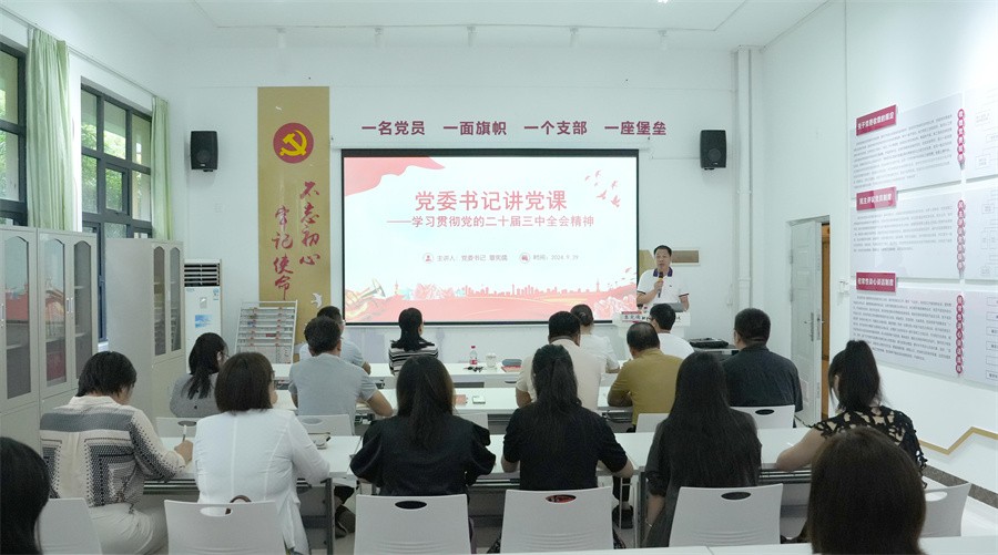 为深入学习贯彻党的二十届三中全会精神,强化理论武装,推动教育教学改革,9月29日,党委书记覃宪儒讲授了党的二十届三中全会精神专题党课。党委副书记陈毅华、副校长刘朝雄出席参加,学校机关第一党支部、机关第二党支部全体党员聆听党课。