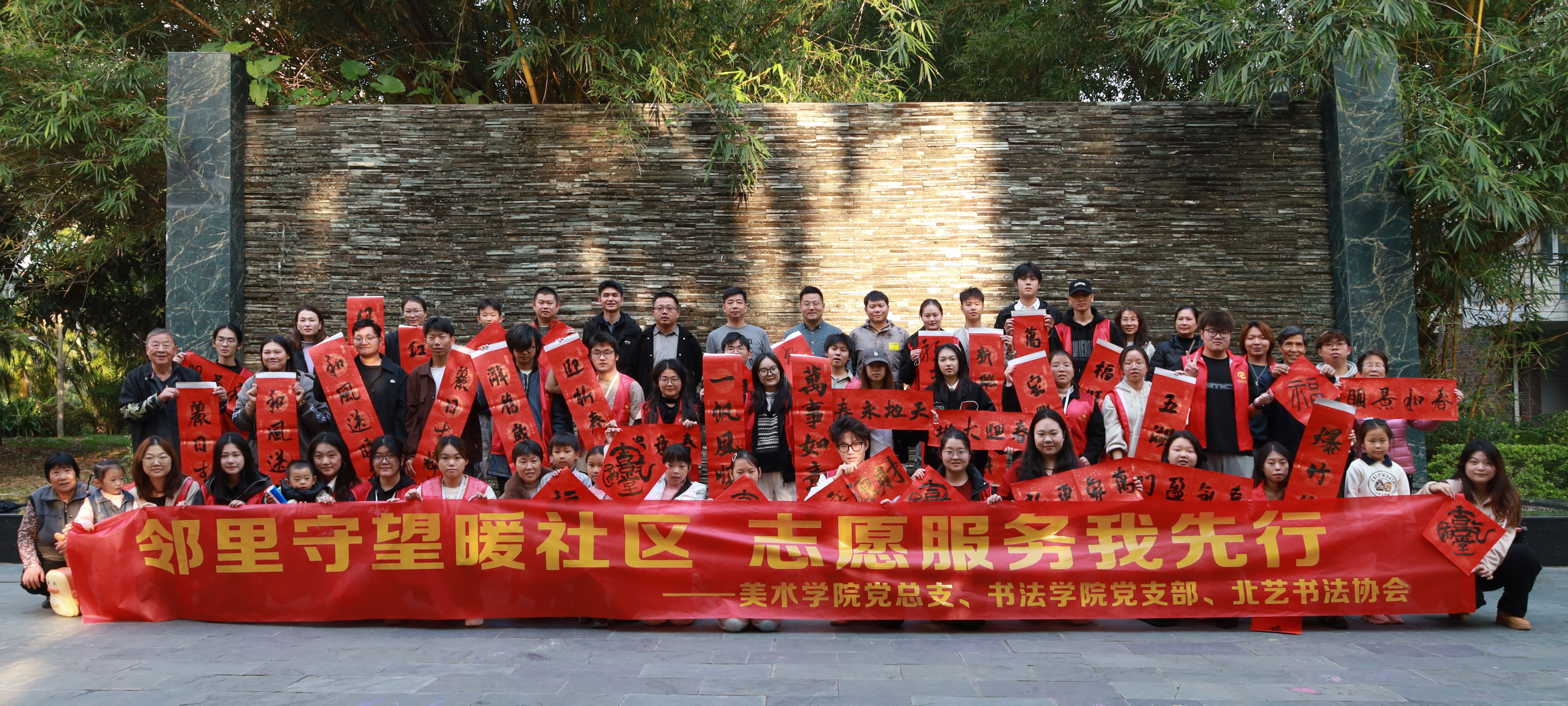 20241221日,正值冬至,由美术学院党总支、书法学院党支部、北艺书法协会联合举办的创城活动——“邻里守望暖社区,志愿服务我先行”在橄榄苑小区顺利举行。