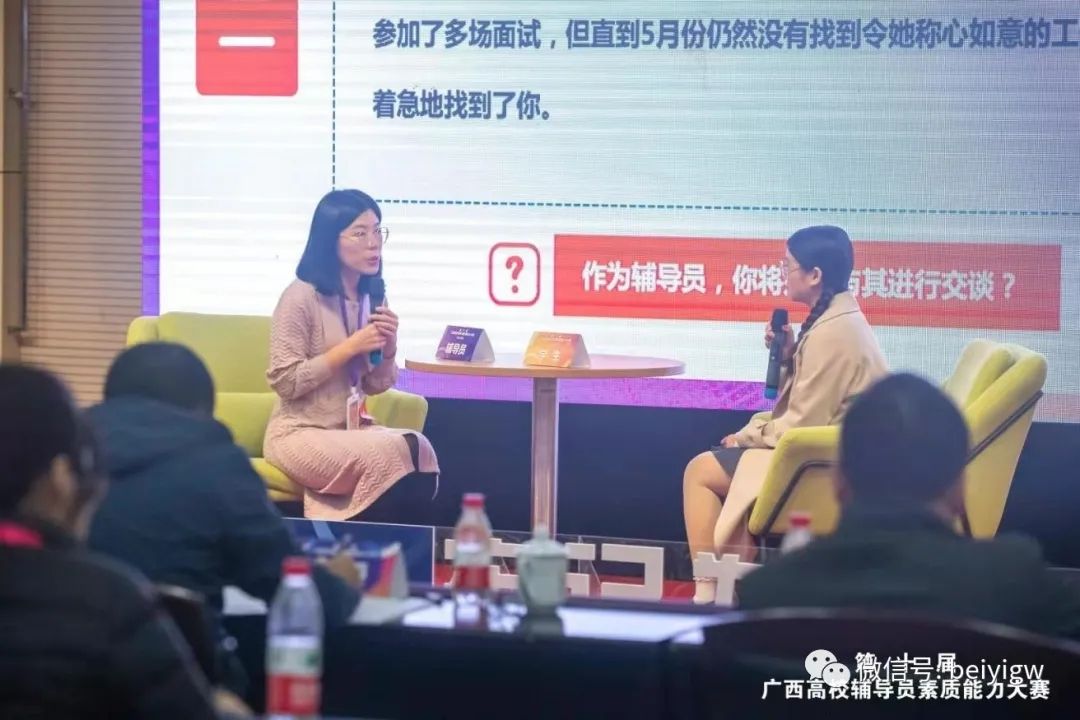 本次大赛分为基础知识测试、谈心谈话和案例研讨三个环节,主要考察辅导员的业务素质和专业知识以及综合运用理论分析、研判、解决问题的能力。赛场上,我校辅导员表现出色,缜密的逻辑思维、扎实的工作基础、流畅的语言表达和良好的精神风貌,获得了现场评委的一致肯定。