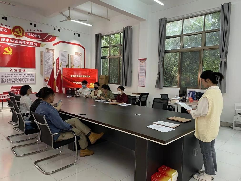 会议开始,主持人介绍大会各项事宜以及大会流程。首先由党支部书记宣读本次会议发展对象被接收预备党员的人员名单,发展对象相继宣读入党志愿书,汇报考察期中自己在思想,生活,工作等各方面的情况。随后由党员对发展对象提出意见,评议其是否具备接收为预备党员的条件。