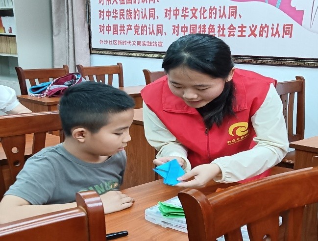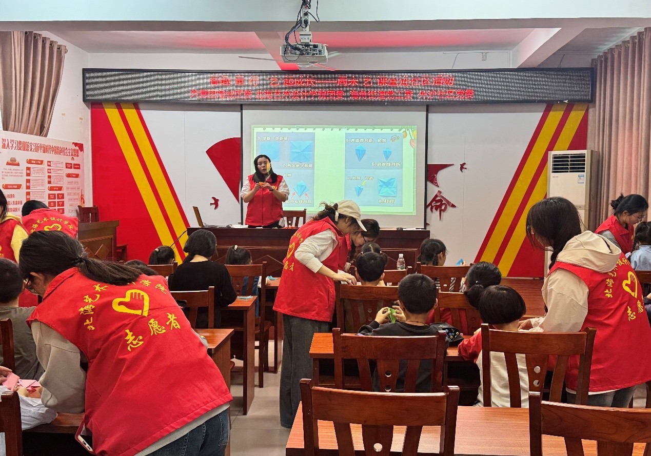 未来,我校将持续深化与外沙社区的合作,推动进社区志愿服务常态化,充分发挥我校教育资源优势,在寓教于乐的沉浸式课堂中,让孩子们在多元实践中启迪智慧、滋养心灵,同步实现志愿服务与社区教育的双向赋能。既为孩子们打开知行合一的新视窗,也为校社协同育人注入持续动能,共同护航“周末‘艺’课堂”社区支教活动扬帆远航。(校团委青年志愿者协会/摄)