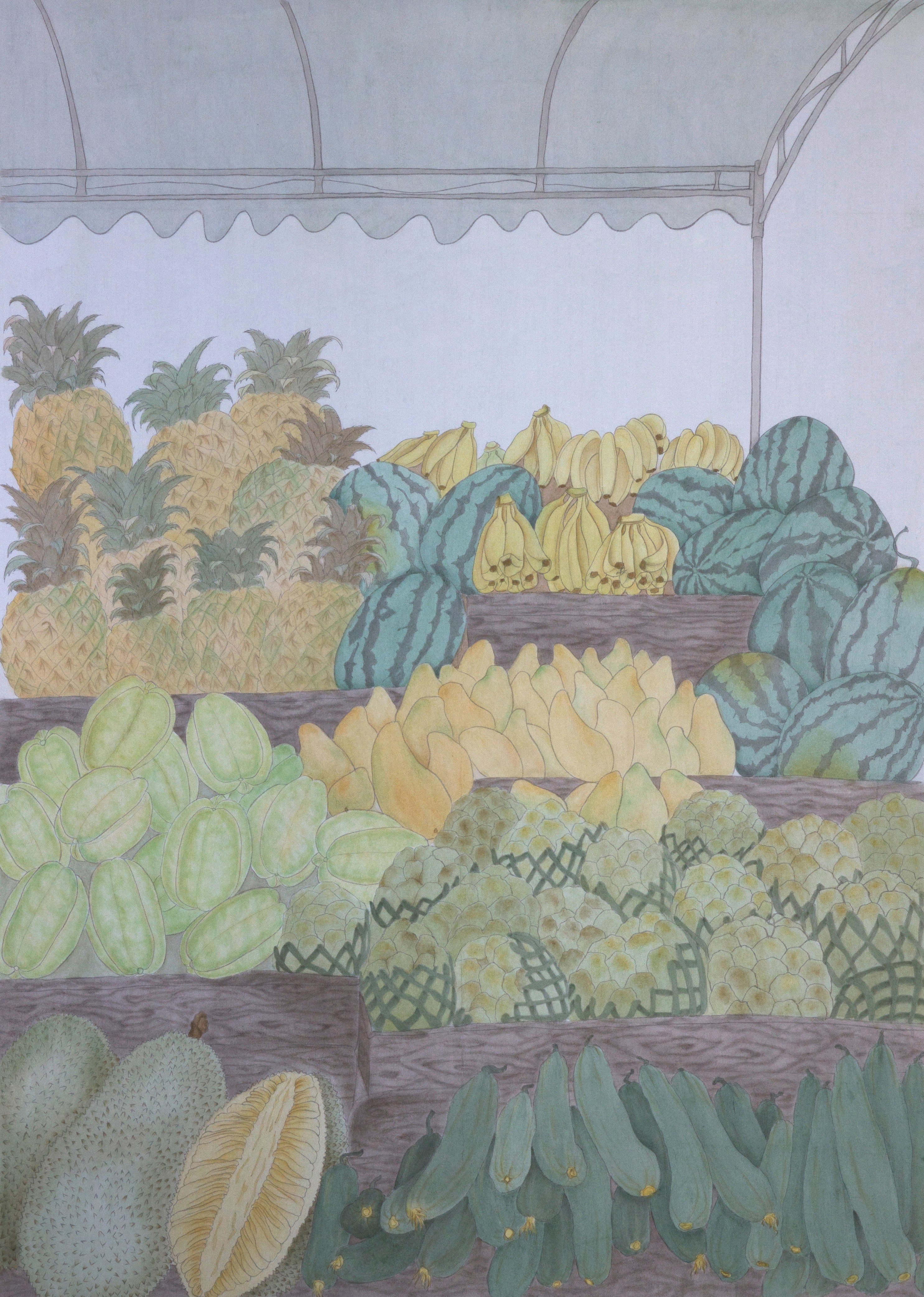 张馨萍《青果市集》115×160cm  2023年 纸本