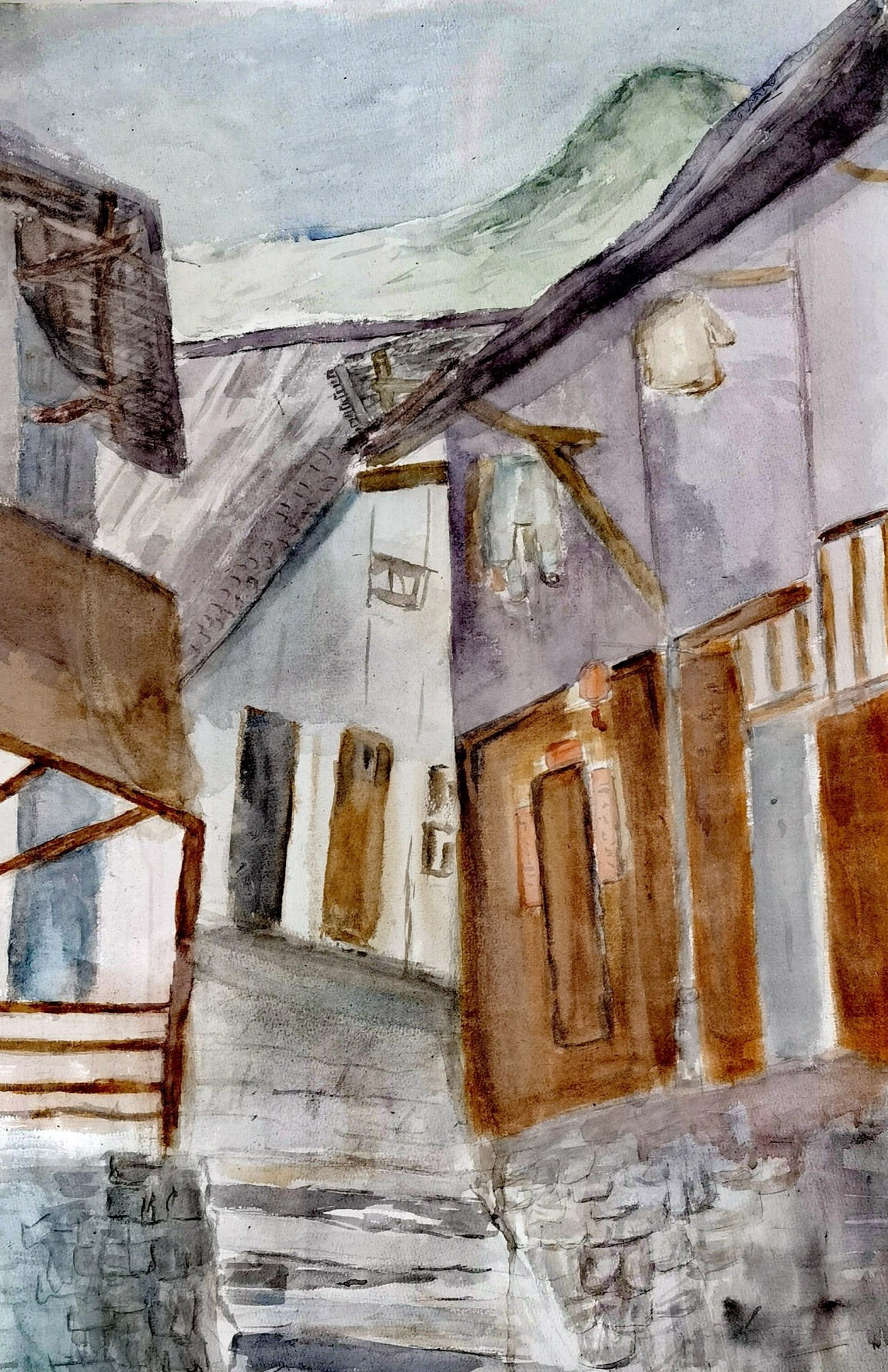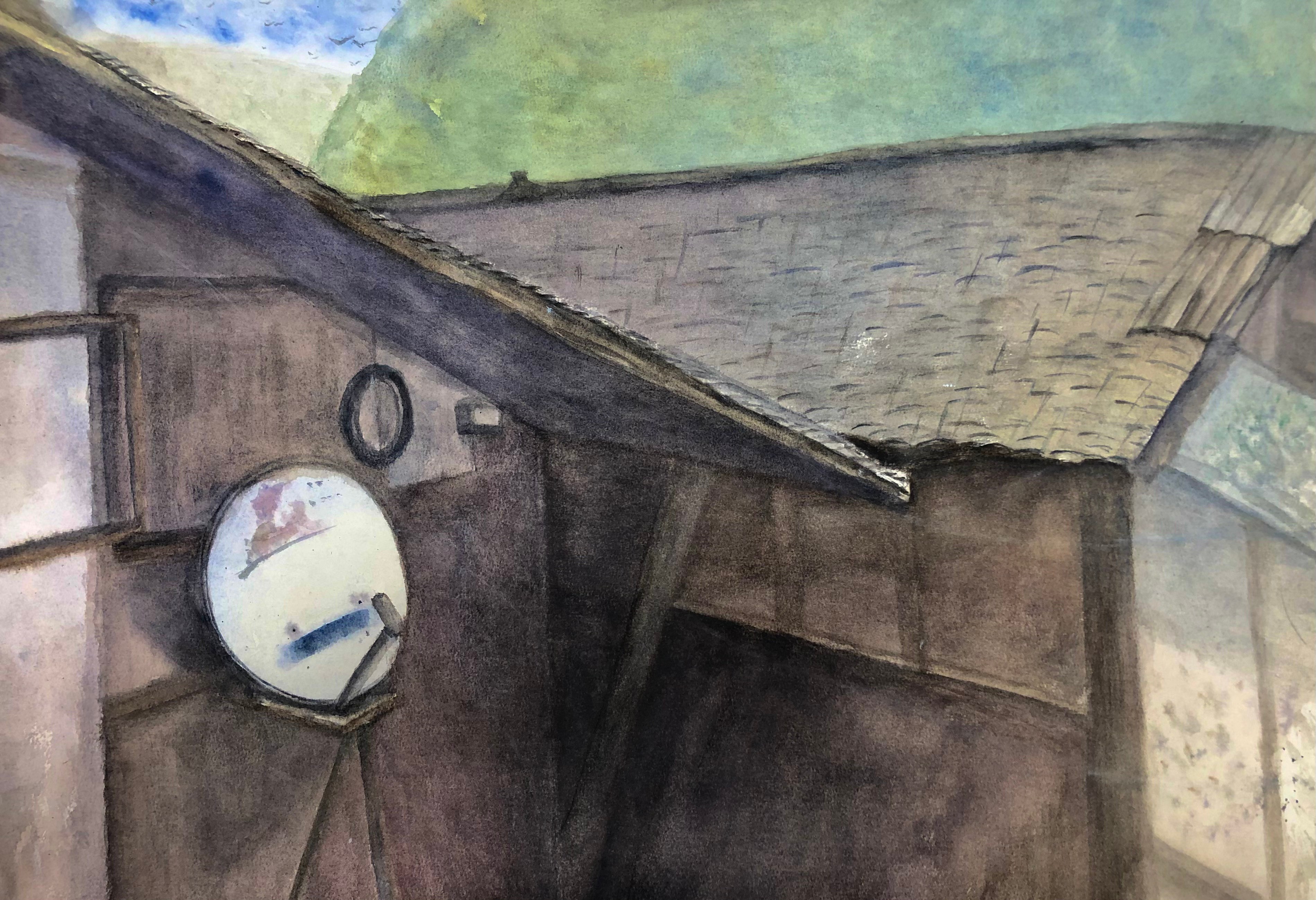 吉克妞牛 《老宅子》 75cm×52 cm  2023年 纸本水彩