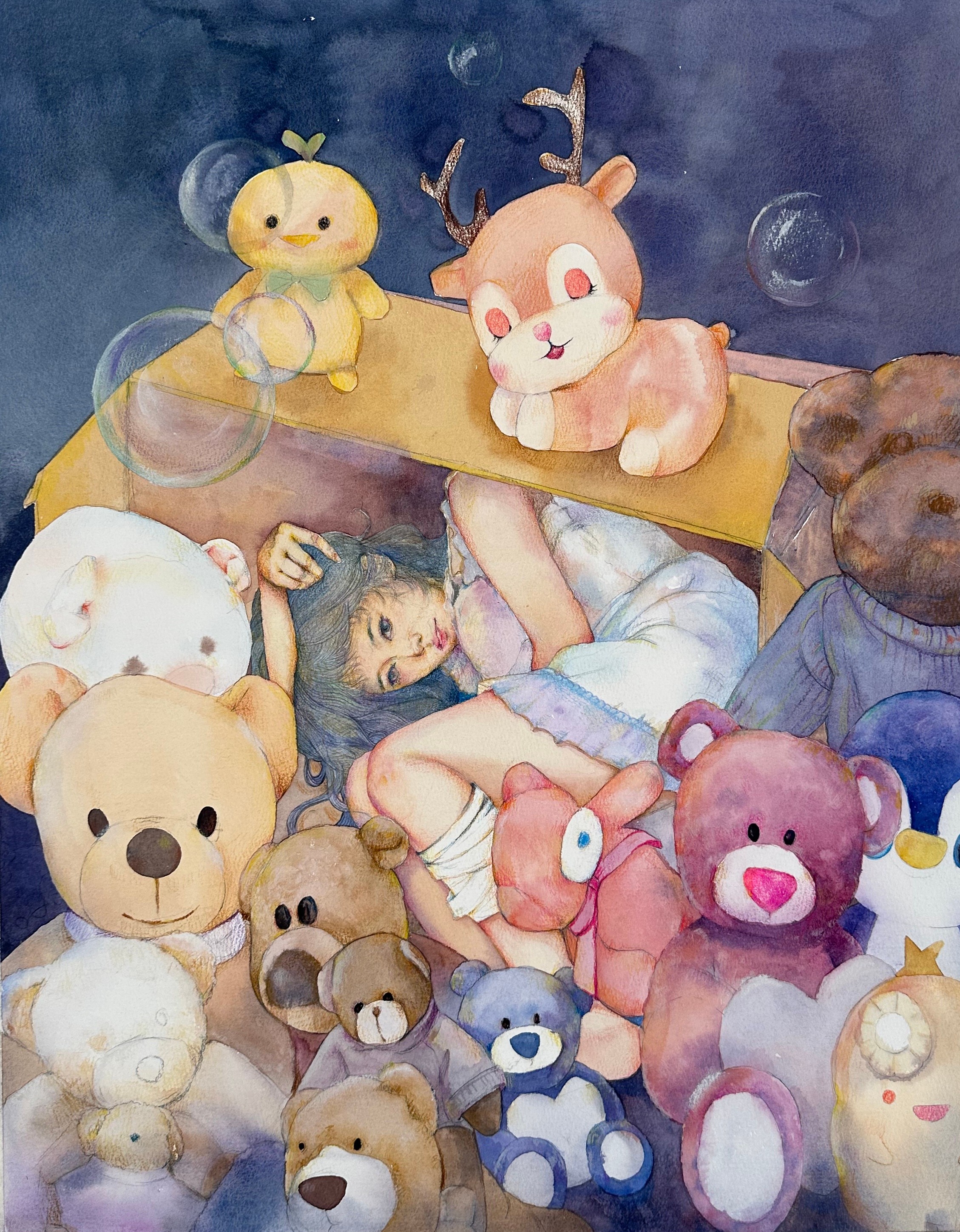 陈观玲  《童年——梦》 50cm×70cm 2023年 纸本水彩