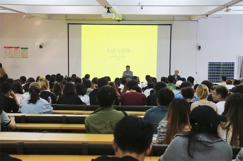 周刚教授表示,艺术创作是一个复杂的过程,通常分为生活积累、创作构思、艺术表达三个阶段;同时艺术创作过程也分为情感性创作、叙事性创作、主题性创作、观念性创作、情景性创作、技术性创作、写生性创作七个类型;他为现场师生进行逐一具体讲解,并希望同学们能够从知识理论中有所启发,从日常生活中有所感悟,从而创作出富有生活气息的艺术创作。