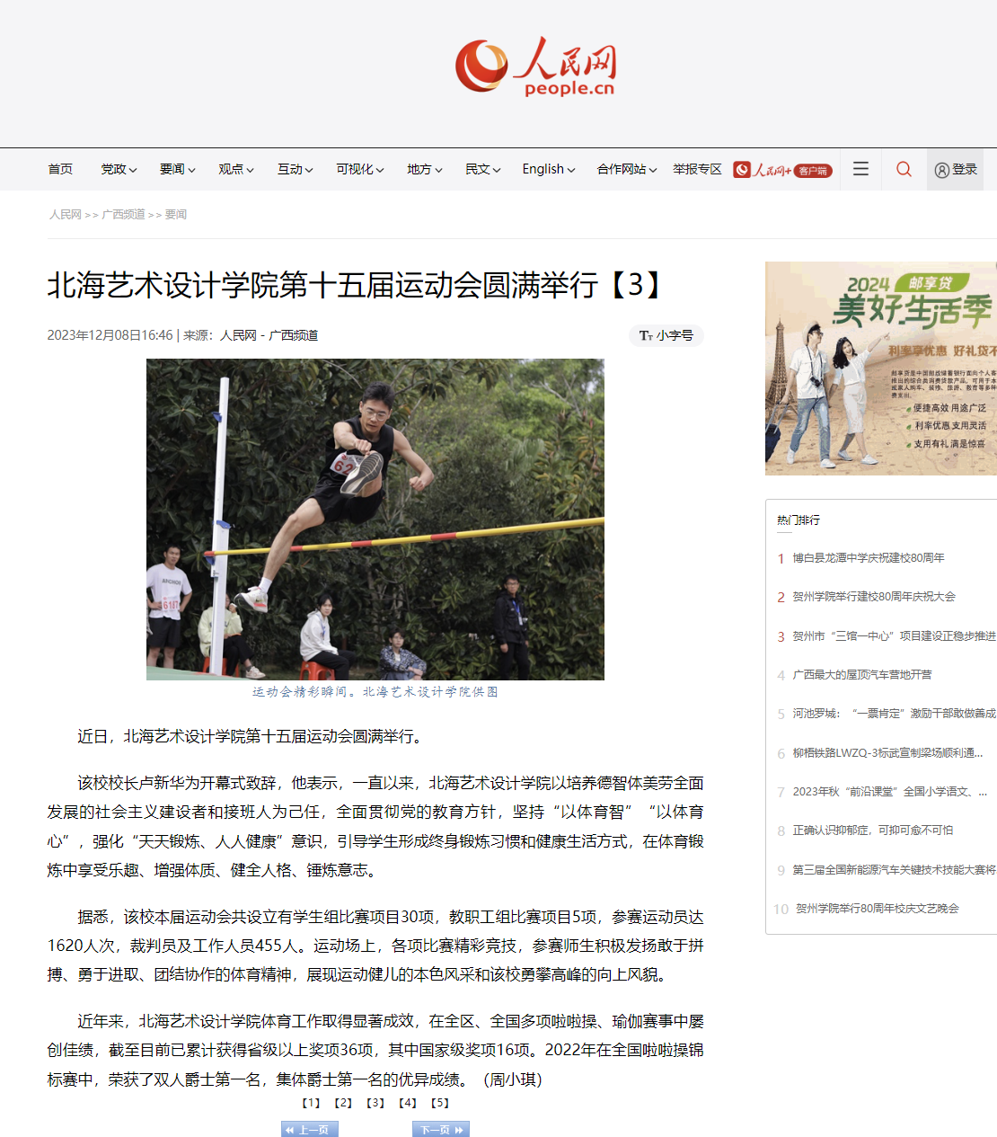 人民网:北海艺术设计学院第十五届运动会圆满举行