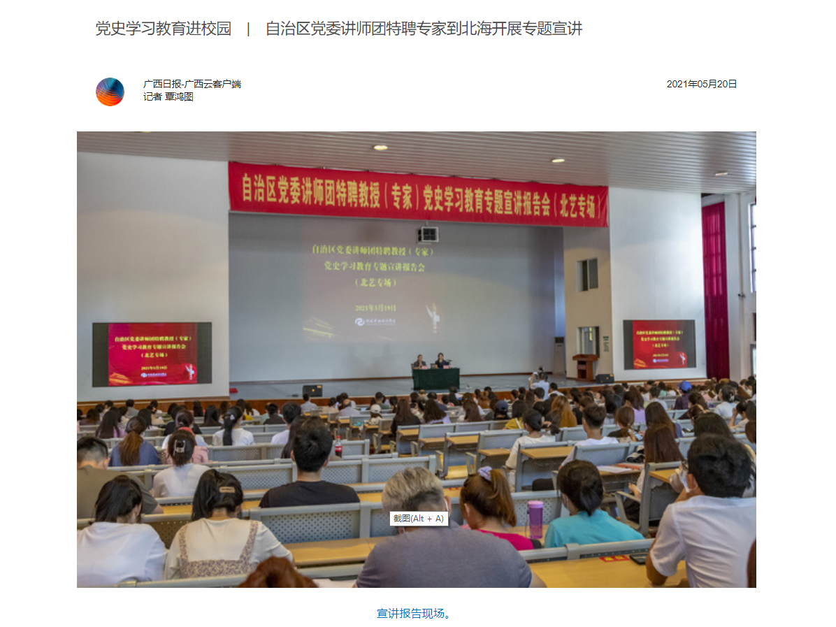 广西日报:党史学习教育进校园| 自治区党委讲师团特聘专家到北海开展专题宣讲