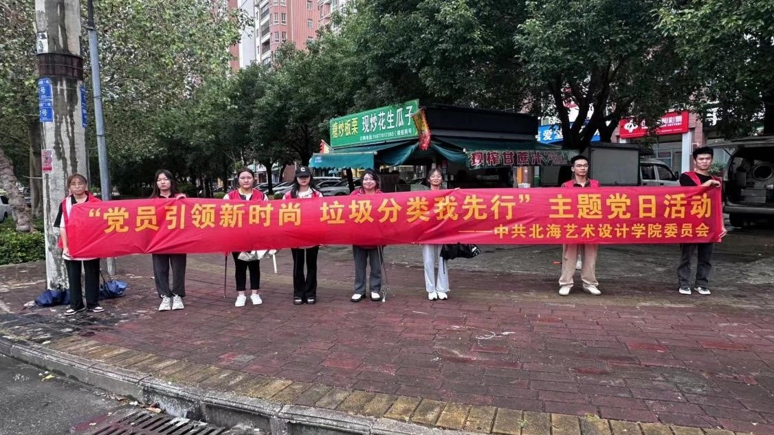 活动中,北海艺术设计学院美术学院第一党支部副书记许荣军带领我们开展垃圾分类从自己做起并引领身边同学垃圾分类,倡导居民群众从爱护环境、文明生活的角度有效处理生活垃圾,杜绝乱放行为,保持身边环境卫生整洁。随手捡起身边的垃圾,增强大家的环境保护意识。