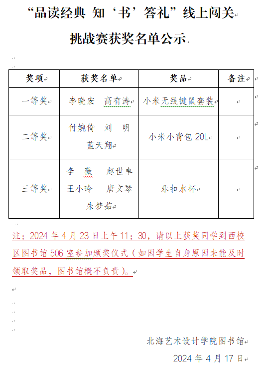 “品读经典 知书答礼”线上闯关 挑战赛获奖名单公示