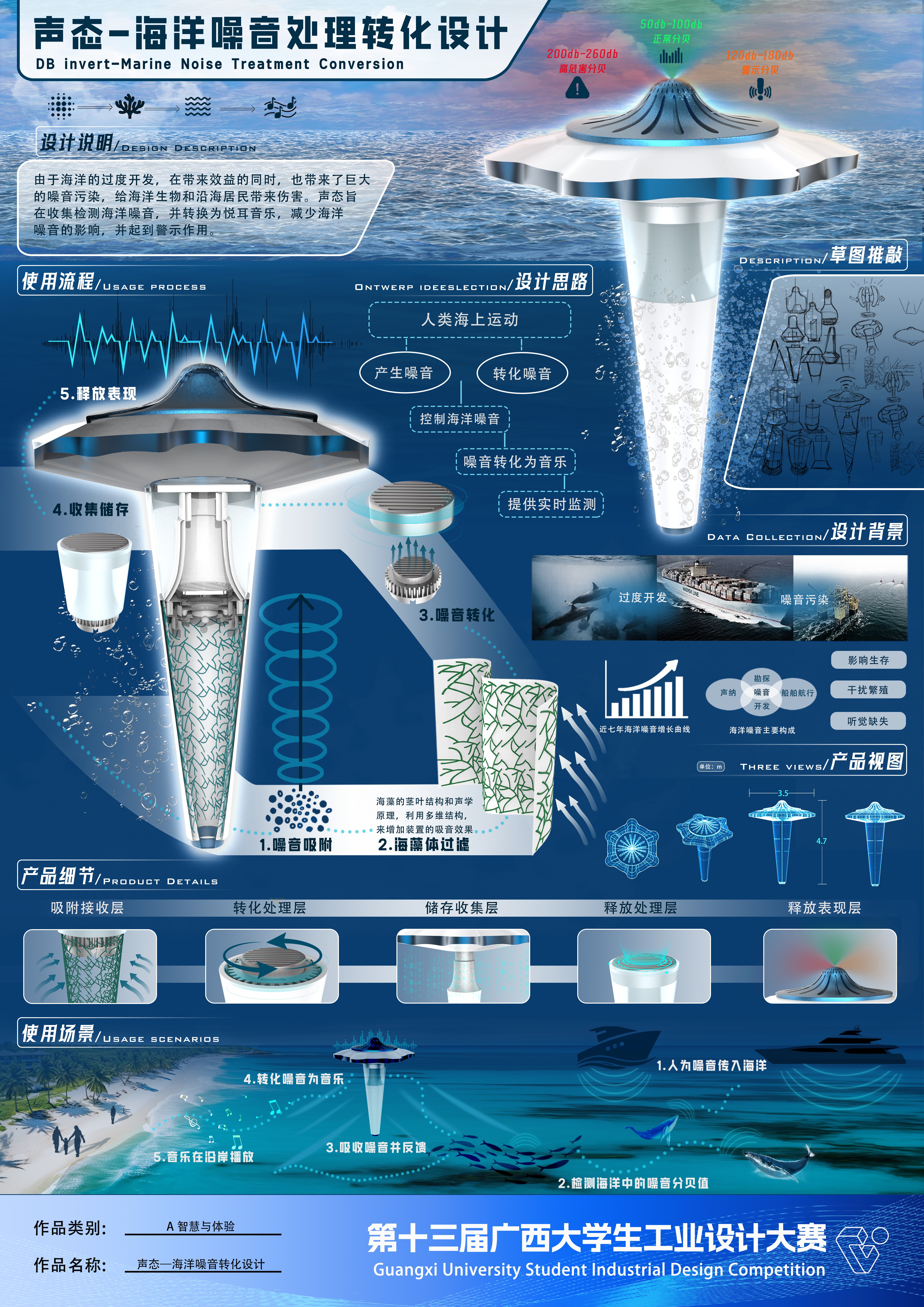 作品名称:声态—海洋噪音处理转化设计    作者:赵时榕 杨月洁 刘轩