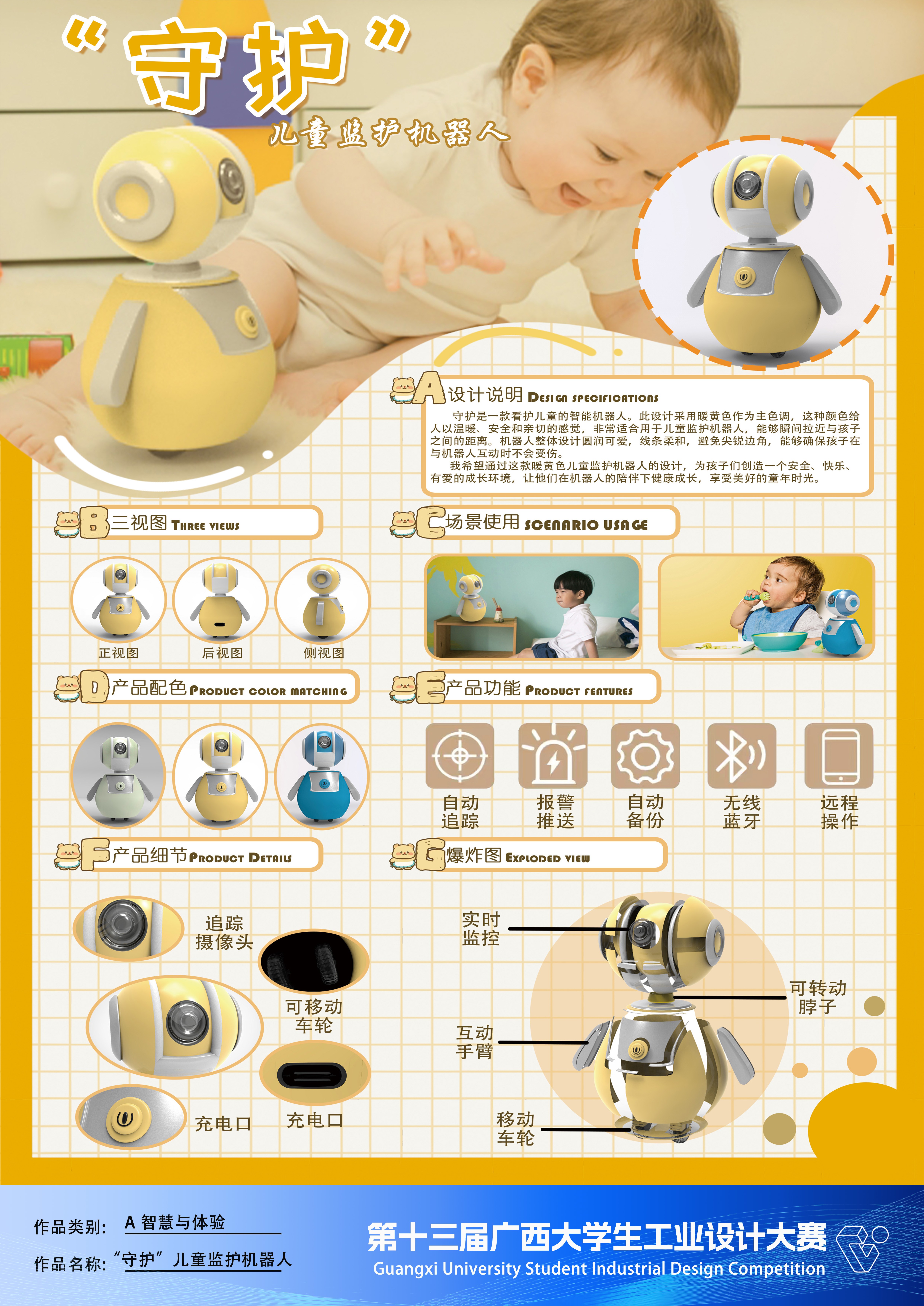 作品名称:“守护”儿童监护机器人    作者:赵文雅 赵开顺 赵时榕