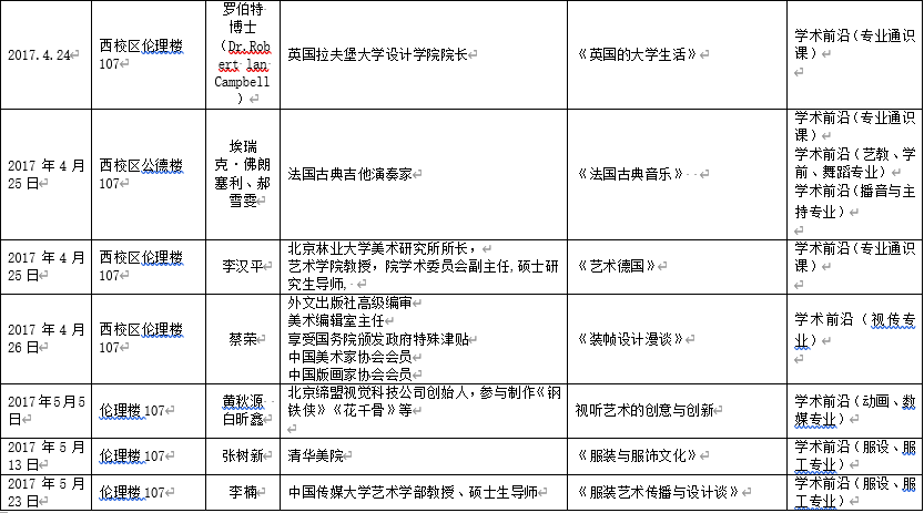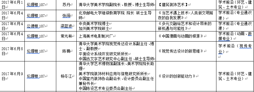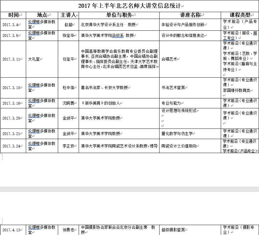2017年上半年北艺名师大讲堂信息统计