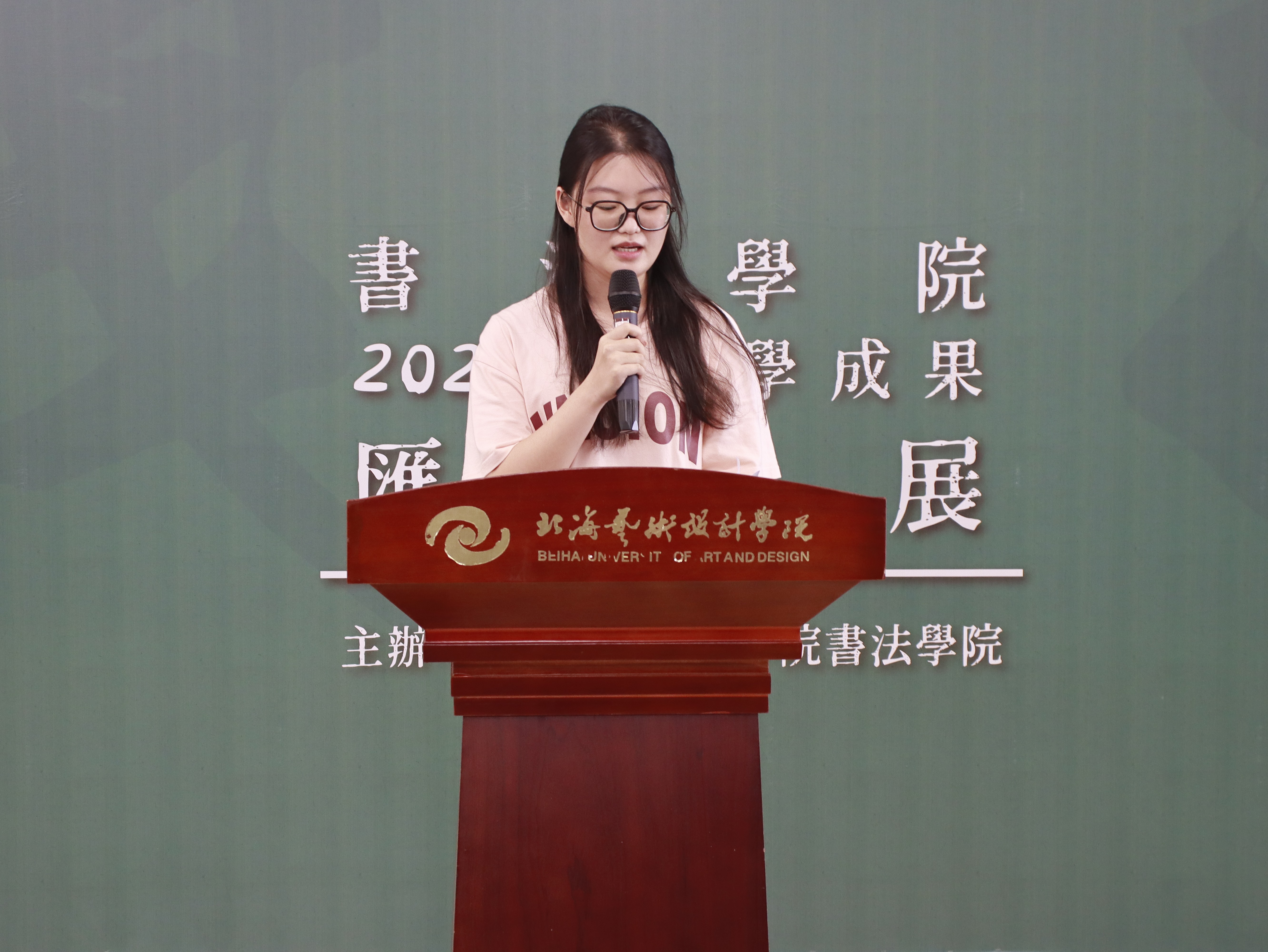 书法学院2204班陈思思同学作优秀学生代表发言分享了自己在书法学院三年的学习经历和感悟。表示,在学院的悉心培养和老师们的辛勤教导下,逐渐成长为能够熟练掌握多种书体、具备独立创作能力的书法人。通过学习书法,不仅提升了自己的专业技能,更培养了耐心、毅力和对传统文化的深厚情感。衷心感谢学院提供的良好学习平台和老师们的无私奉献,并表示将继续努力,在书法道路上不断前行。