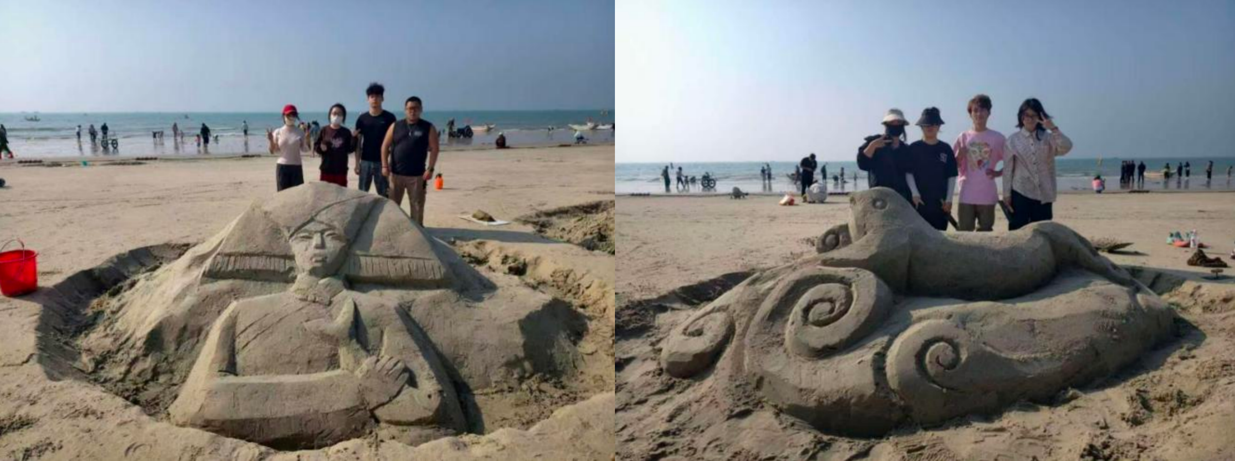 12月30日,为弘扬传统沙雕艺术文化,提高艺术审美与实践教学的综合结合力,美术学院雕塑教研室组织24级雕塑学生在北海银滩举行沙滩教学实践活动。挖掘区域文化元素加以综合创作,让艺术实践服务于美丽的北部湾,让沙滩艺术创作与海滩美景共放光彩。