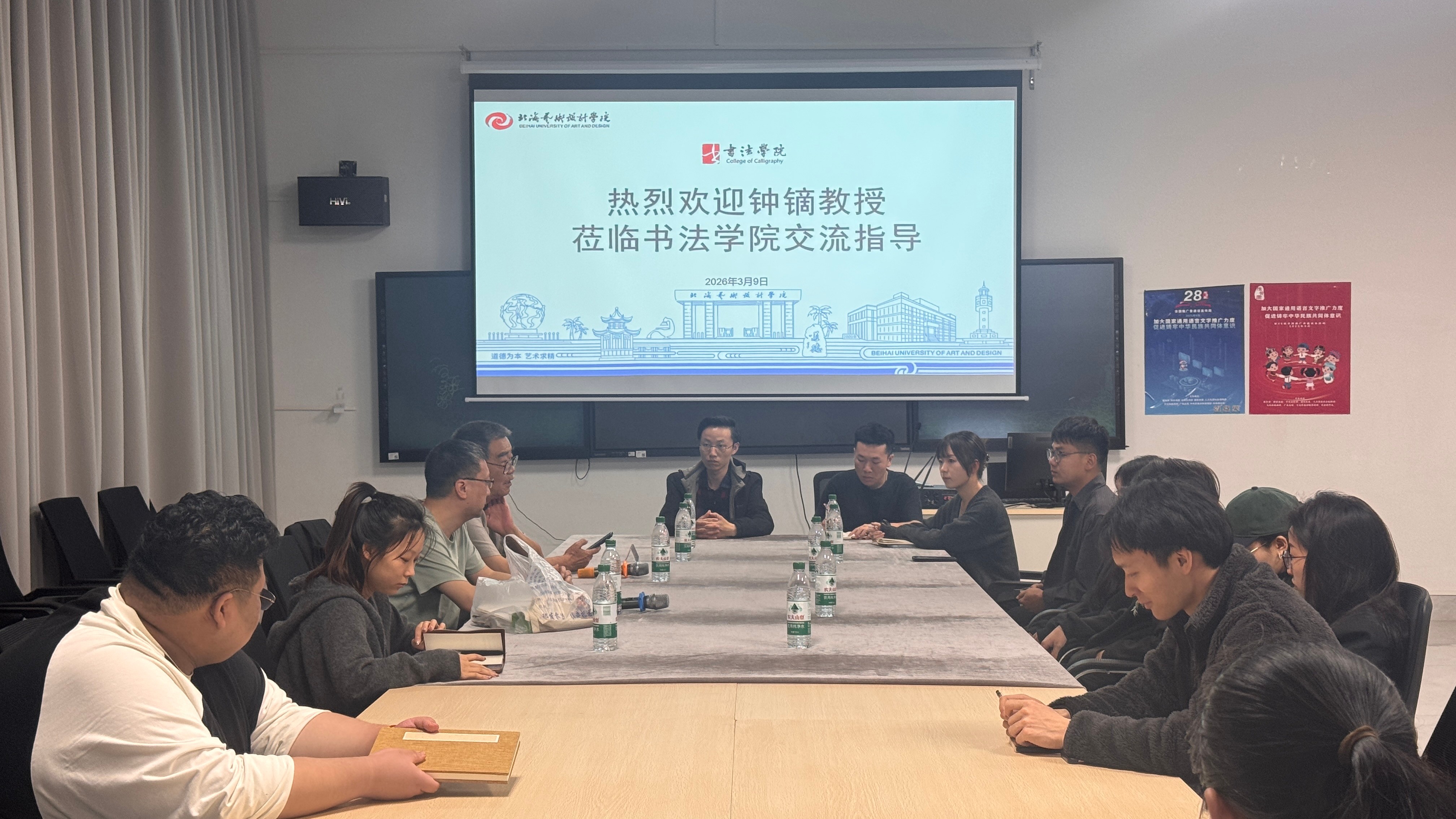 202639日,中国书法家协会会员,陕西省书法家协会第四、第五届理事,陕西省青年书法家协会第四届副主席钟镝教授应邀来院,在艺德楼507书法教研室举行艺术座谈会与篆刻交流活动。西安市书法家协会第五届副主席、西安美术学院客座教授李和生作为特邀嘉宾出席,书法学院师生代表共同参与。