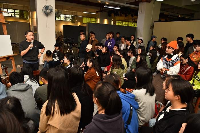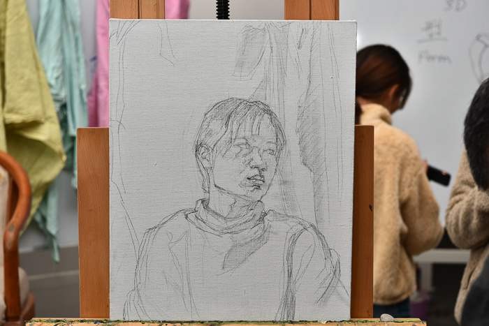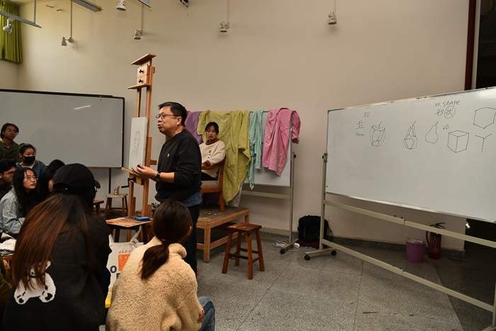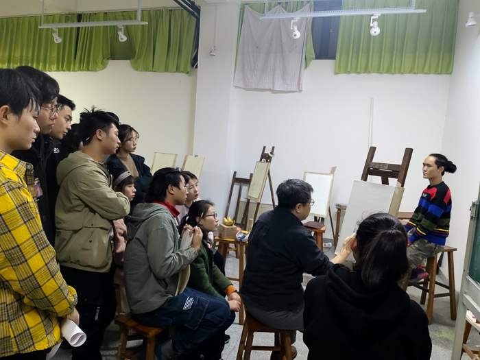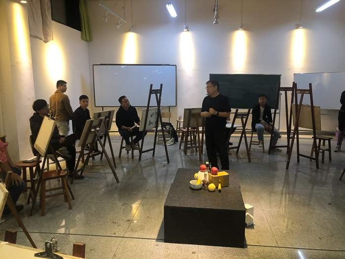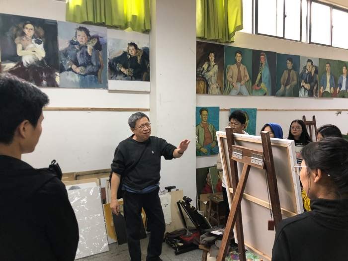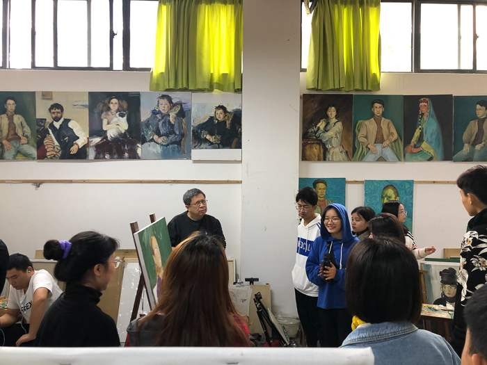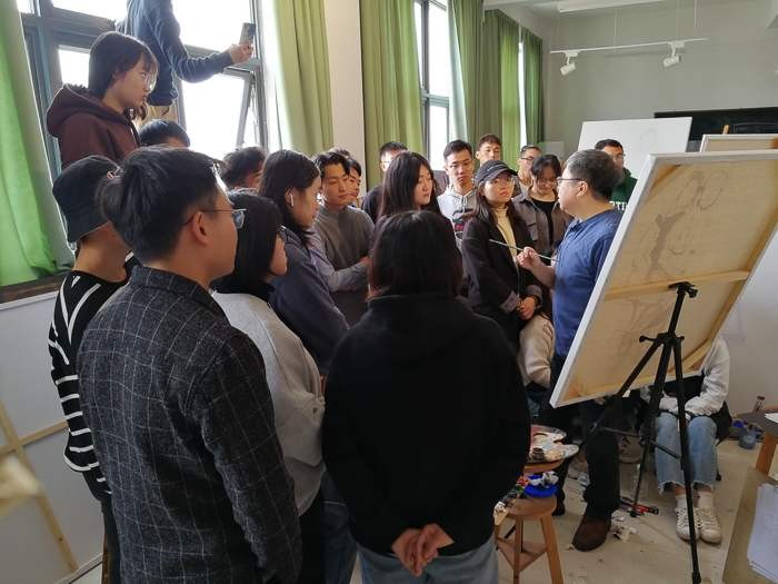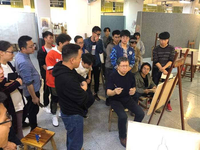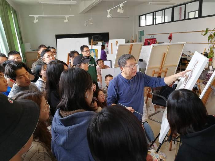 对美术学院的老师和学生代表进行了绘画基础培训,传授自己的教学方法。