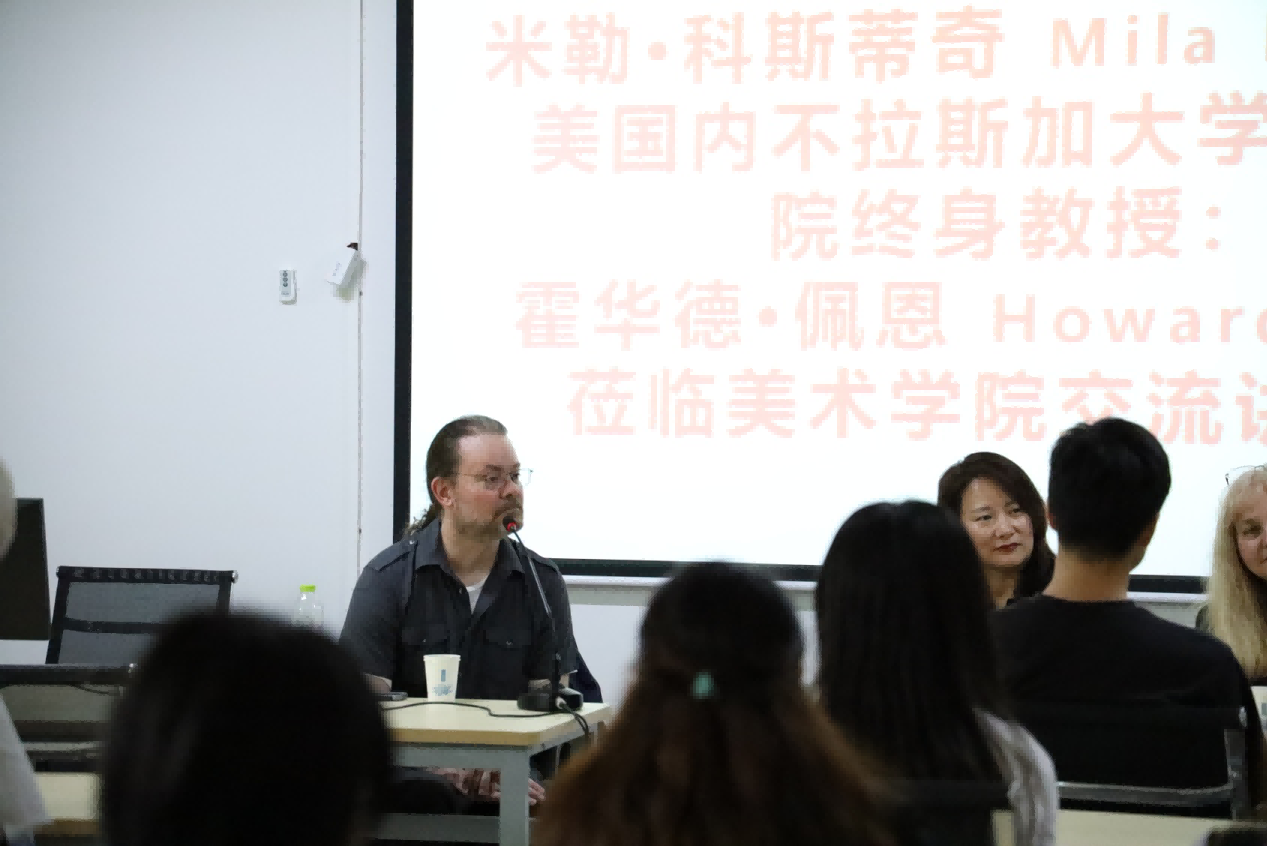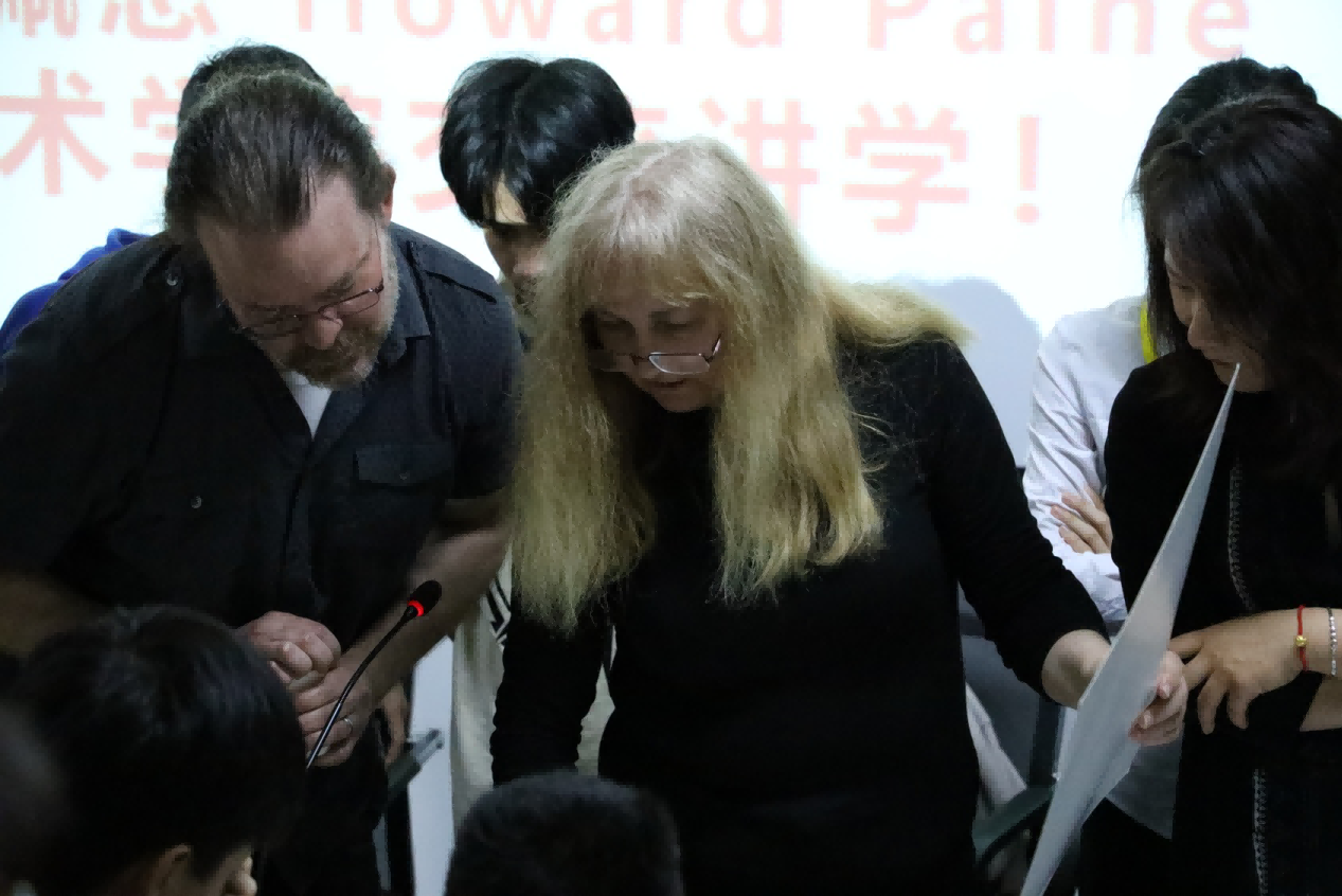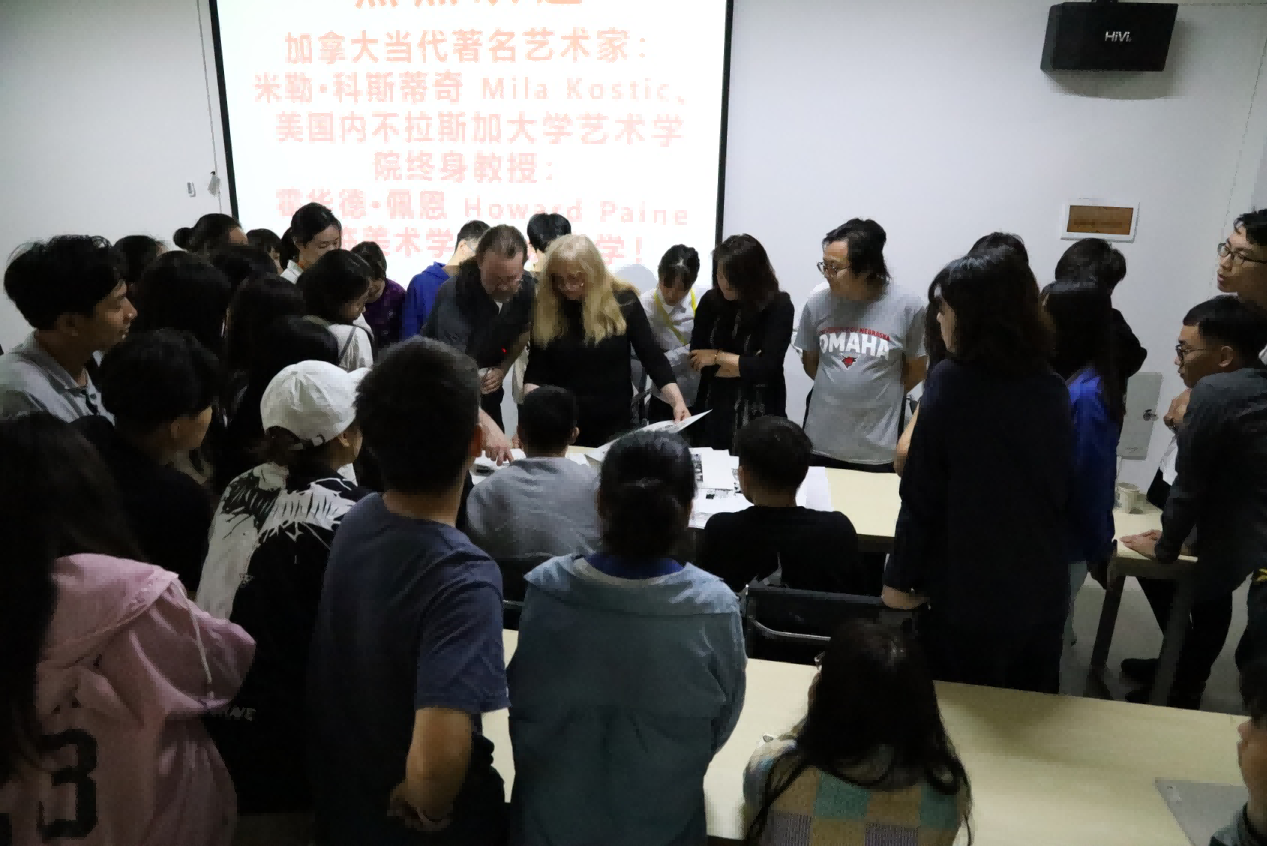 随后,美术学院领导为此专门请米勒·科斯蒂奇(Mila kostic)与霍华德·佩恩(Howard paine),同绘画专业同学进行零距离的指导和交流。同学们认真聆听艺术家的创作趣事、艺术观点、了解到了当代最前言艺术信息,拓展了视野,期间很多同学积极发言提问,艺术家对于学生提出的问题都进行了认真细致的解答。