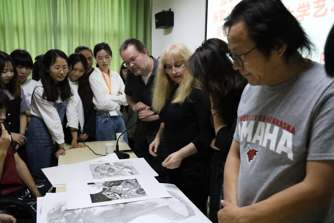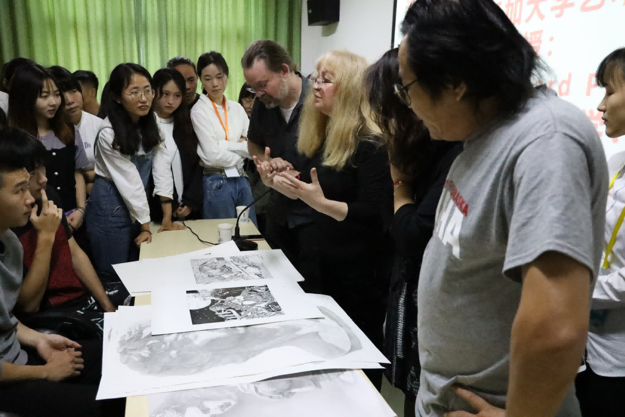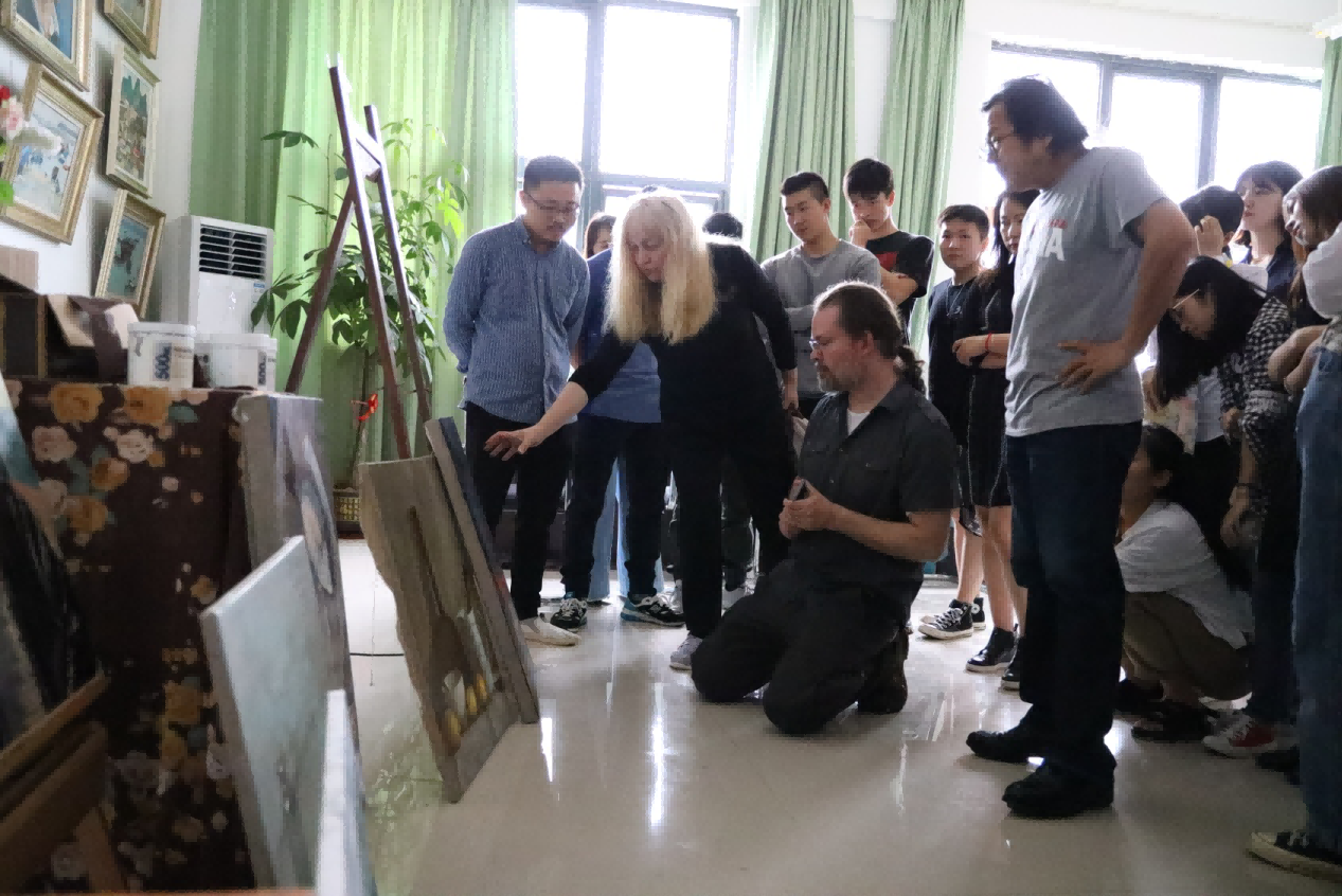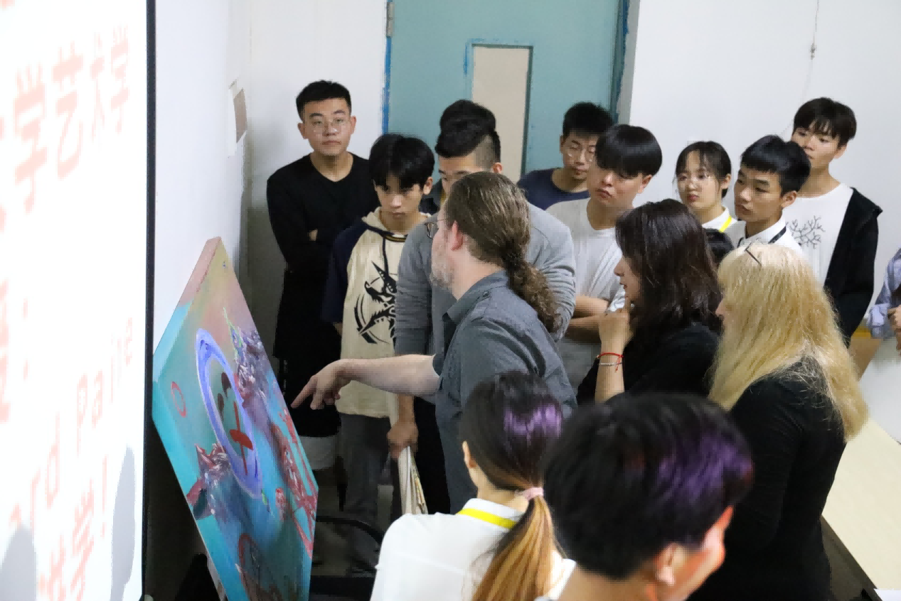 随后,美术学院领导为此专门请米勒·科斯蒂奇(Mila kostic)与霍华德·佩恩(Howard paine),同绘画专业同学进行零距离的指导和交流。同学们认真聆听艺术家的创作趣事、艺术观点、了解到了当代最前言艺术信息,拓展了视野,期间很多同学积极发言提问,艺术家对于学生提出的问题都进行了认真细致的解答。