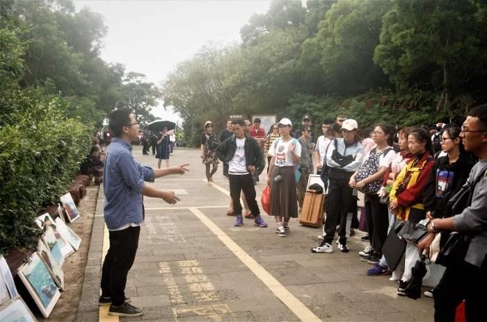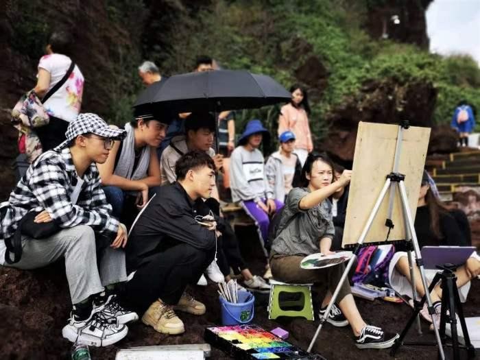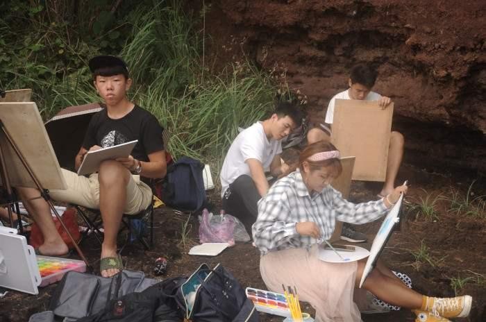 (火山口景区学生写生场景)