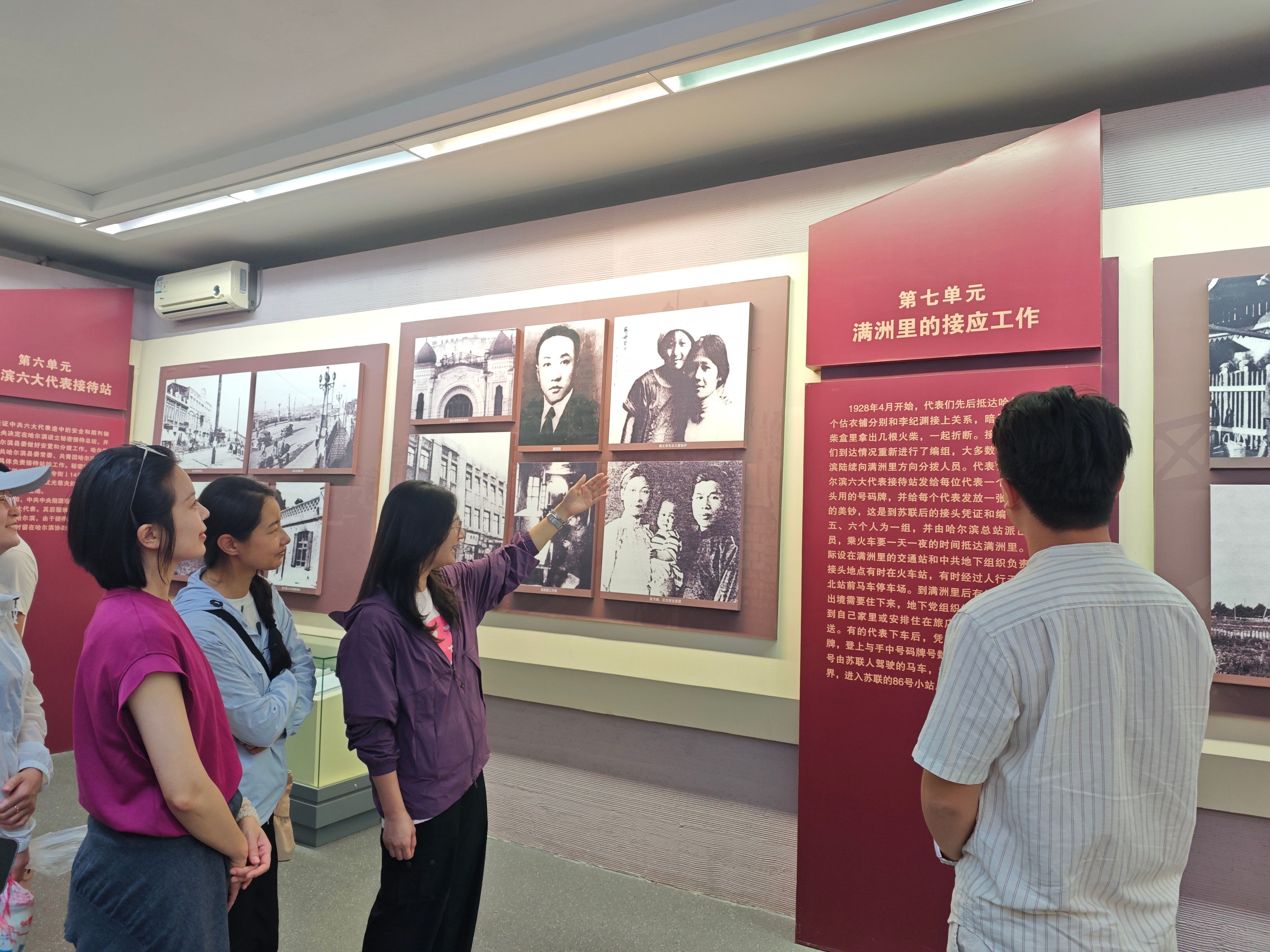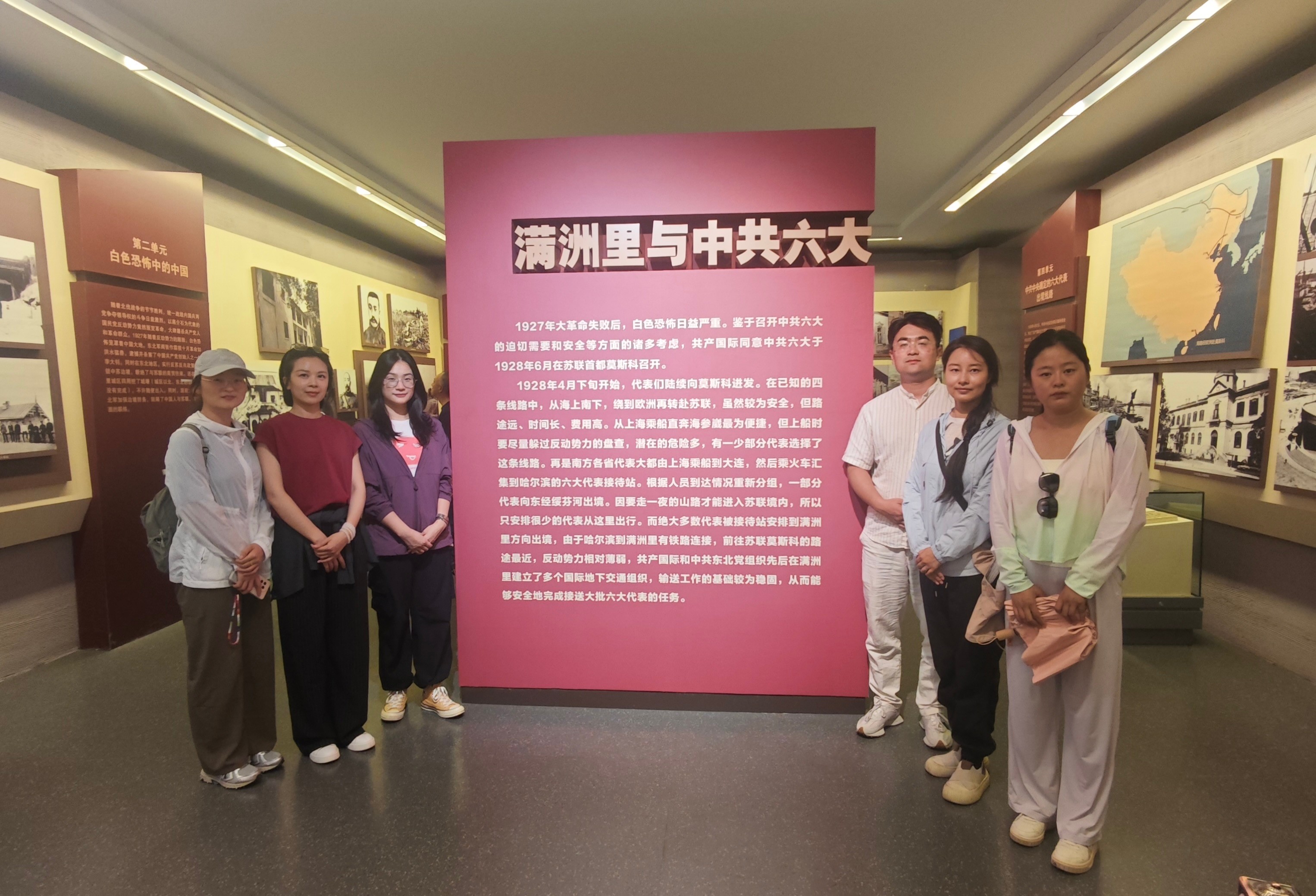 中共六大展览馆内,一件件展品无声诉说着那段艰苦卓绝的革命岁月。作为中国共产党唯一一次在境外召开的党的全国代表大会,中共六大在党的历史上具有重要意义,为中国革命指明了方向。教师们认真聆听革命先驱在复杂环境中坚持斗争、探索真理的事迹,深刻感悟他们 “为中国人民谋幸福,为中华民族谋复兴” 的初心使命。