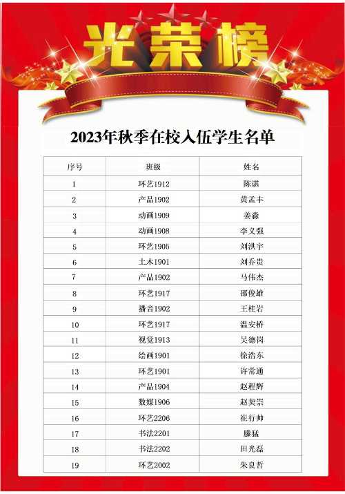 祝愿入伍的同学们在军队中能够成长为杰出的优秀军人,为国家的繁荣富强贡献自己的力量,也欢迎更多同学参军入伍,报效祖国。