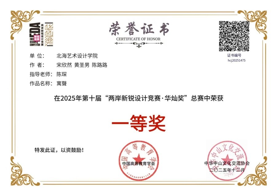 近日,第十届两岸新锐设计竞赛·华灿奖活动圆满落幕,设计艺术学院在此次竞赛中表现优异,共获国家级奖项3项,其中一等奖2项、二等奖1项;获省级奖项6项,其中一等奖1项、二等奖2项、三等奖3项。
