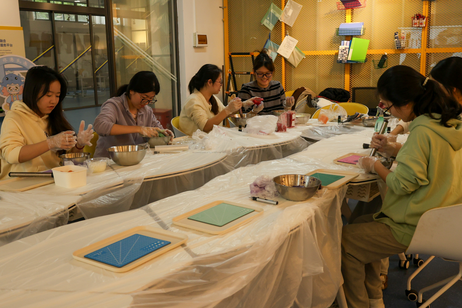 在实践体验环节,学生亲手参与皂基揉捏、塑形、组合等操作流程,在专注于触觉感知、嗅觉体验与视觉创作的过程中,日常学业与生活压力得到有效缓解,心境逐步趋于宁静平和。“当手指反复接触温润的皂体,所有注意力都集中在当下操作时,内心的焦虑感渐渐消失,收获了难得的平静。”一名参与学生在活动后分享道,直观体现了本次活动的疗愈成效。