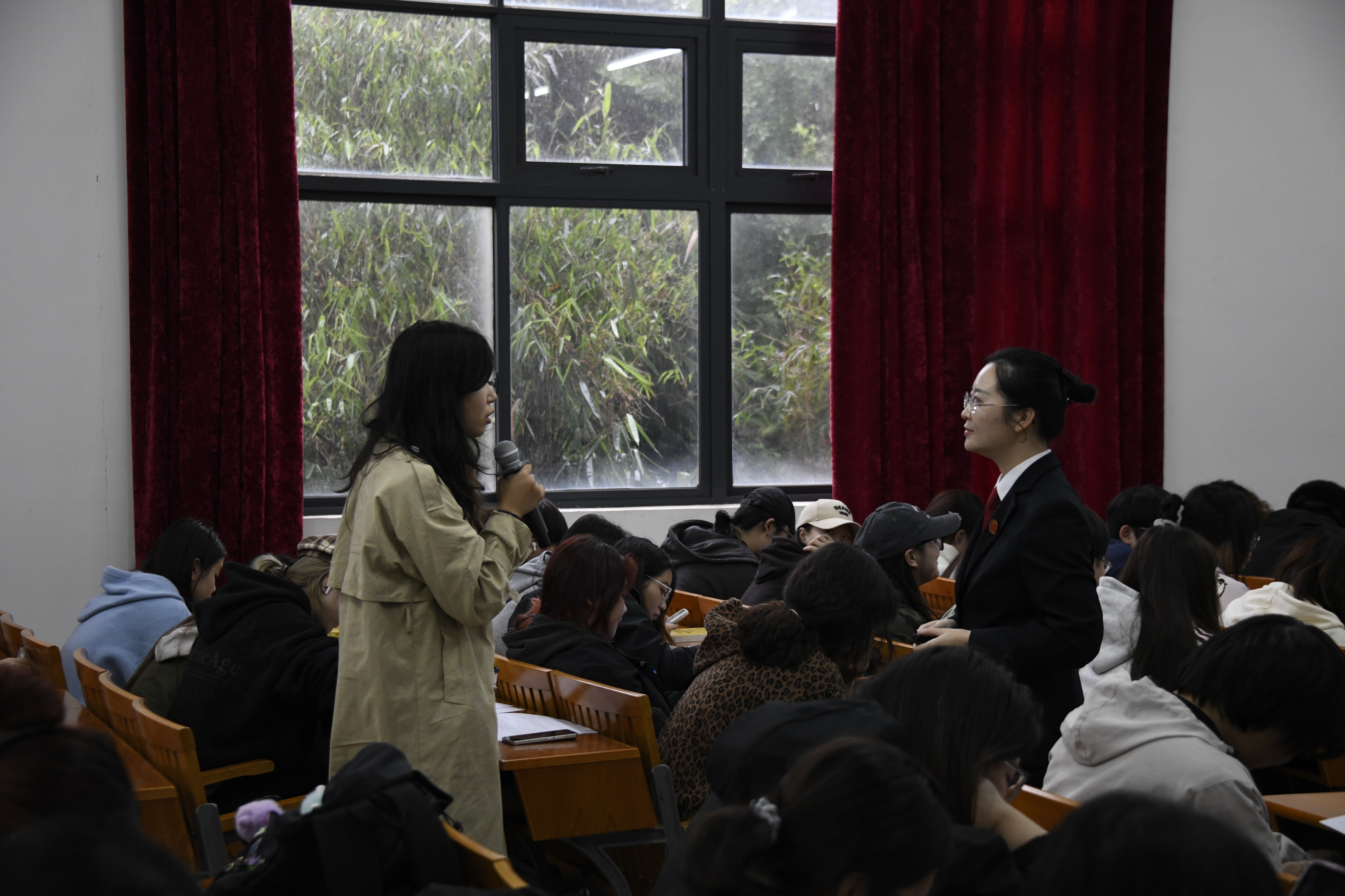 在现场互动环节,同学们踊跃提问,就日常生活中遇到的法律困惑与张法官进行了深入交流,现场气氛热烈。